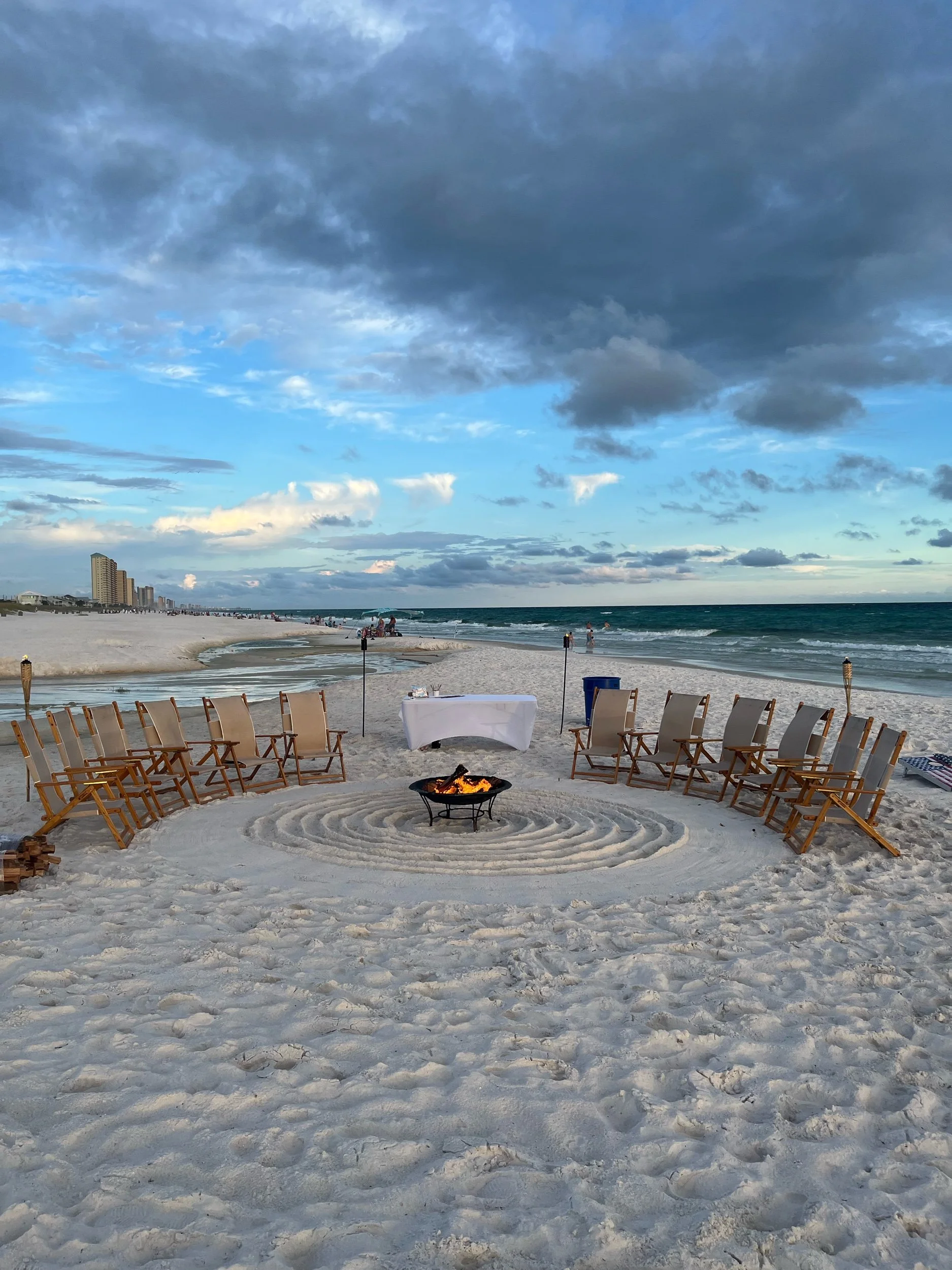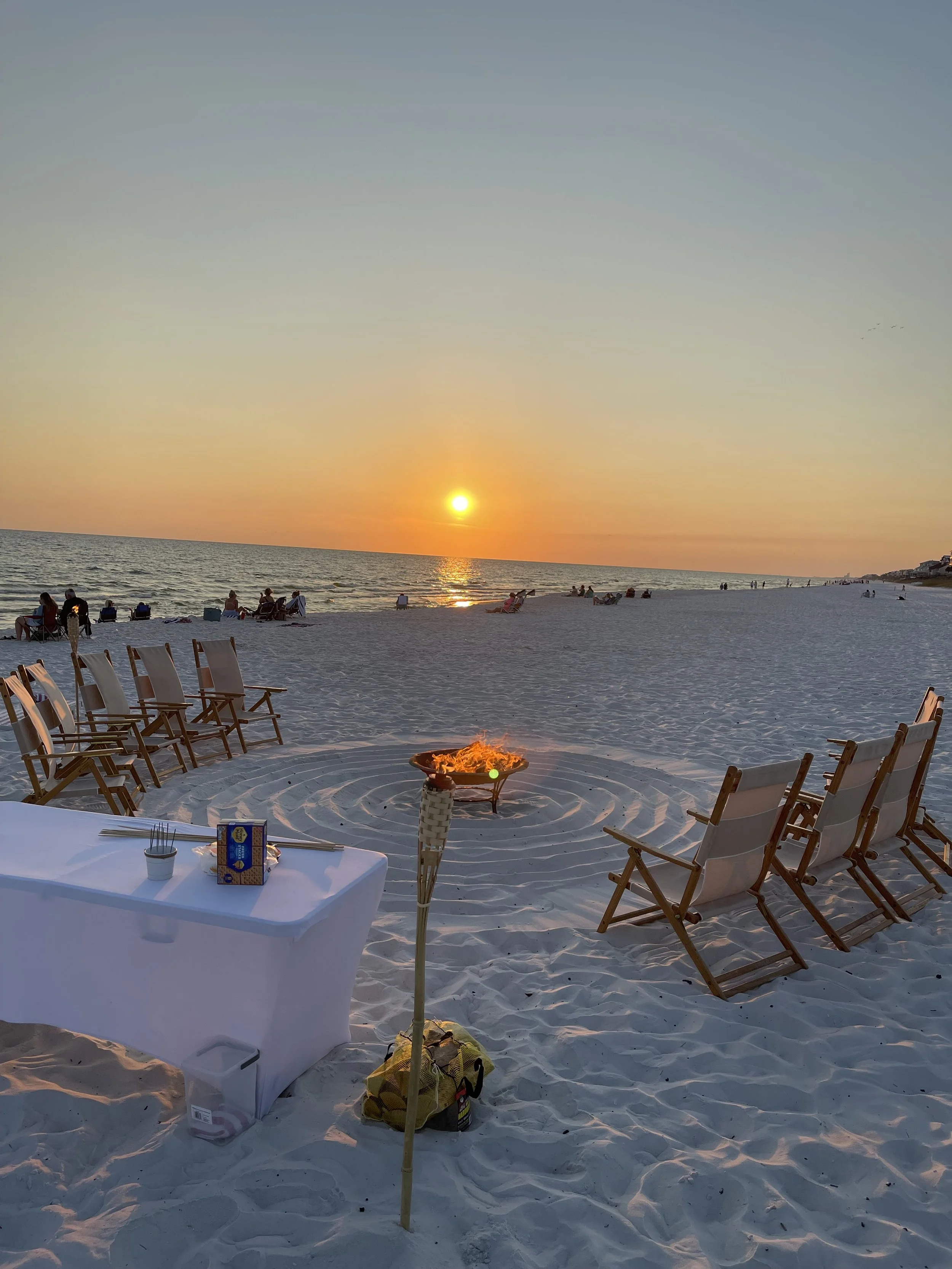 Text or call 850-598-3276 to book today Salt & Smoke Beach Co. Salt & Smoke Beach Co. Salt & Smoke Beach Co. Fun N Sun $300.00 Bring your own chairs $200.00 Deluxe Fire $375.00 Basic Fire $275.00 Date Night $225.00 Call or Text 850-598-3276 to book your fire today